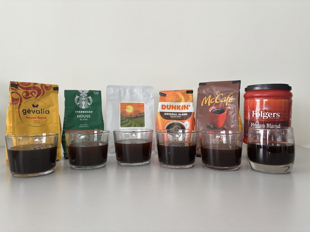I also brewed a bunch of popular medium roast blends in my collection. I then sampled them side by side with my Flores coffee: