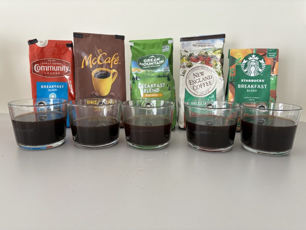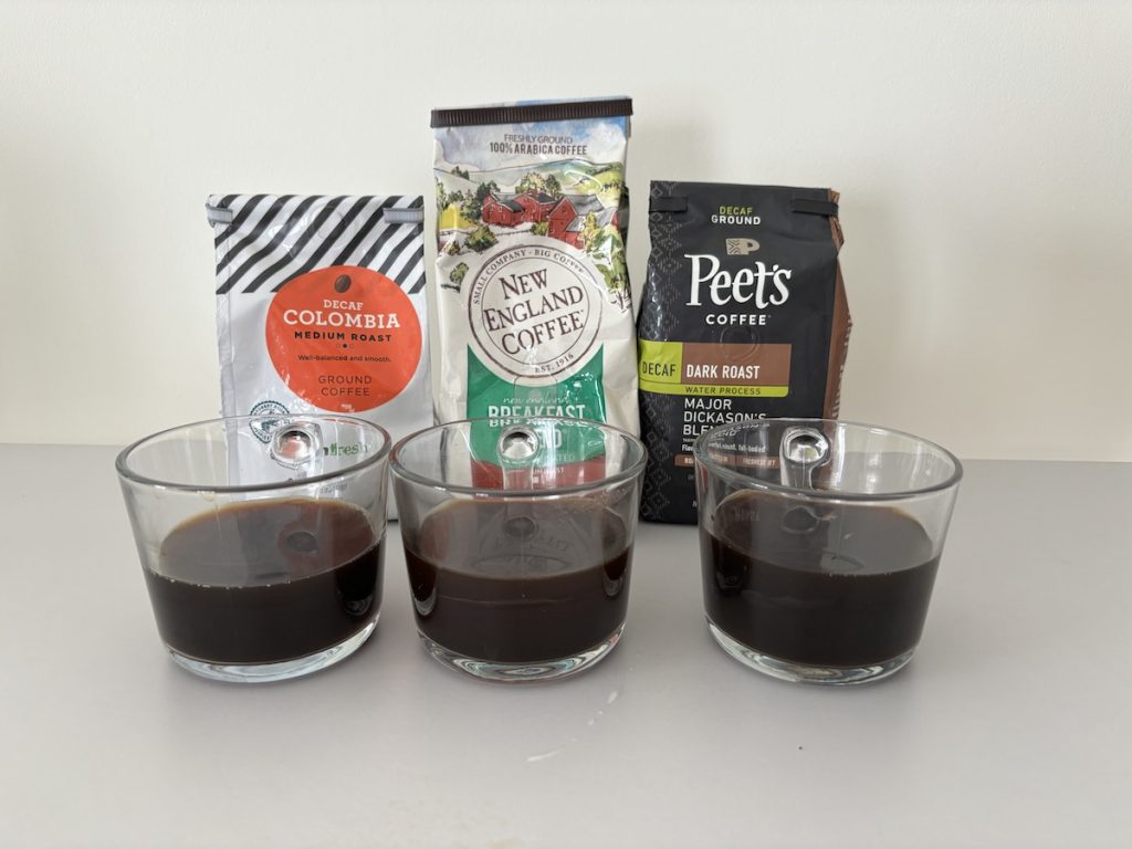 Next, I sampled the New England Coffee’s Breakfast Blend Decaf with other popular medium-roasted blends. These are:
