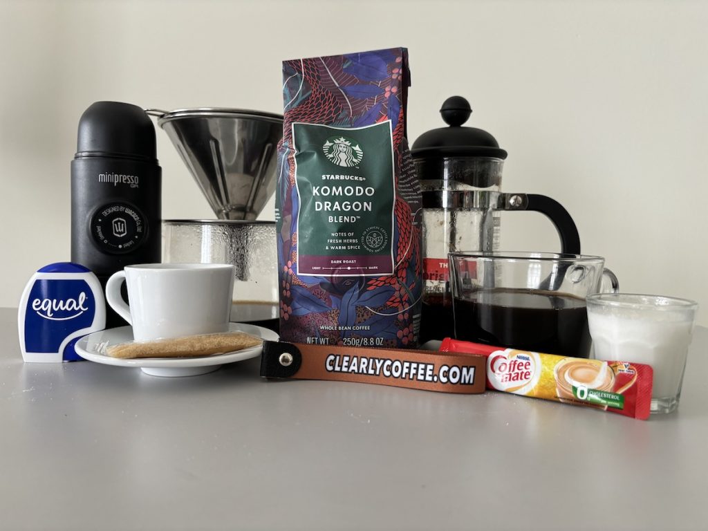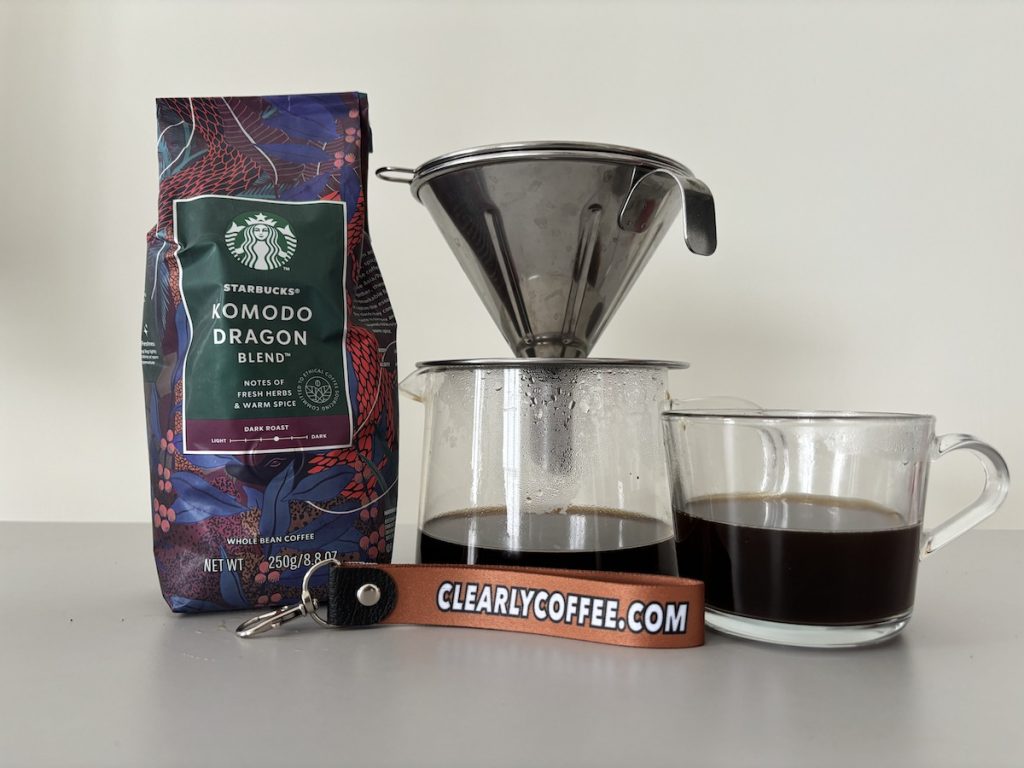 I will review the Starbucks Komodo Dragon Roast in this post. As usual, I will brew the coffee three ways and then sample it with popular flavorings. I’ll also compare it against other light roasts and regular coffee.